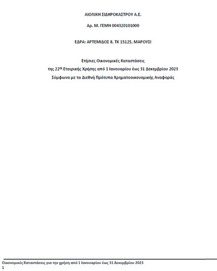 Για να κατεβάσετε τις Χρηματοοικονομικές Καταστάσεις του 2023 πατήστε εδώ